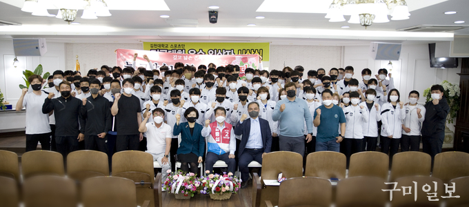 윤옥현 김천대학교 총장은 “김충섭 김천시장님께서 스포츠의 메카 김천시에 맞는 팀들을 만들어 김천시와 김천대학교가 함께 응원하며 웃고 즐길 수 있도록 하자고 하셨고, 축구부에 이어 배드민턴과 스쿼시 그리고 유도, 육상, 레슬링 등 김천시와 대학이 연계하여 성장할 수 있는 종목들을 창단했지만, 이렇게 빨리 입상할지는 꿈에도 상상하지 못했다. 김충섭 시장님께서 결승전이 열리면 같이 응원하자고 약속했는데 그 꿈이 현실이 될 날이 머지않은 것 같다. 김천시민과 대학구성원들이 함께 응원할 수 있도록 지금에 만족하지 말고 더 노력해 달라”며, 입상자들을 격려했다.