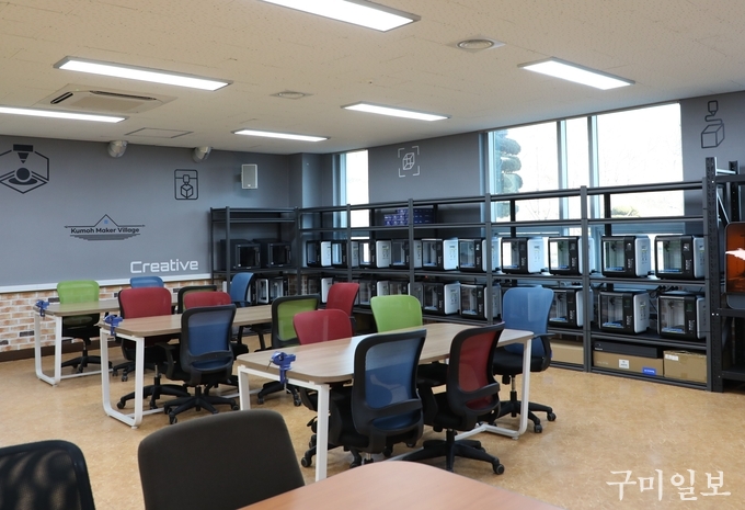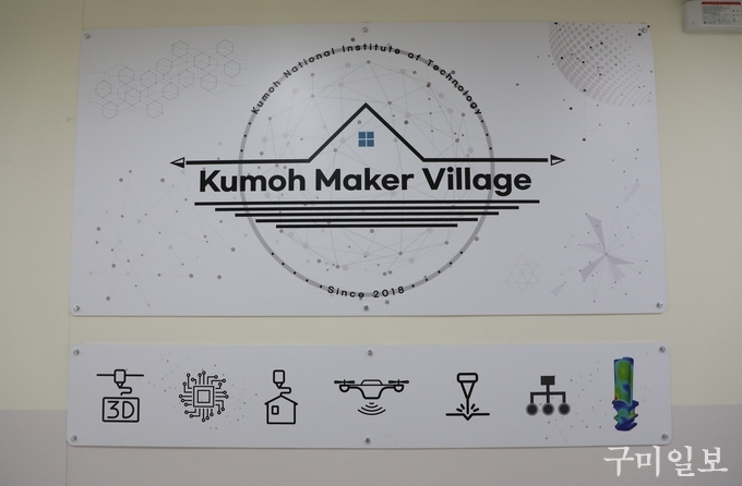 금오공대 메이커 스페이스는 ‘메이커 빌리지(Maker Village)’라는 이름으로 교내 벤처창업관에 위치해 있으며, 초·중·고교생과 일반인에게 앱 개발, S/W코딩, 로봇, 머신러닝 등 4차 산업 관련 교육 및 체험뿐만 아니라, 예비 창업자와 스타트업 기업을 위한 시제품 설계 및 제작 지원도 하고 있다.