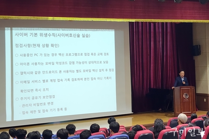 성재모 대표는 강의 중 구미대 PC 및 교직원과 학생 개인 PC에 대한 무료 원격 보안점검 제공을 약속해 학생들의 큰 호응을 얻었다.