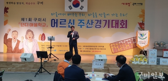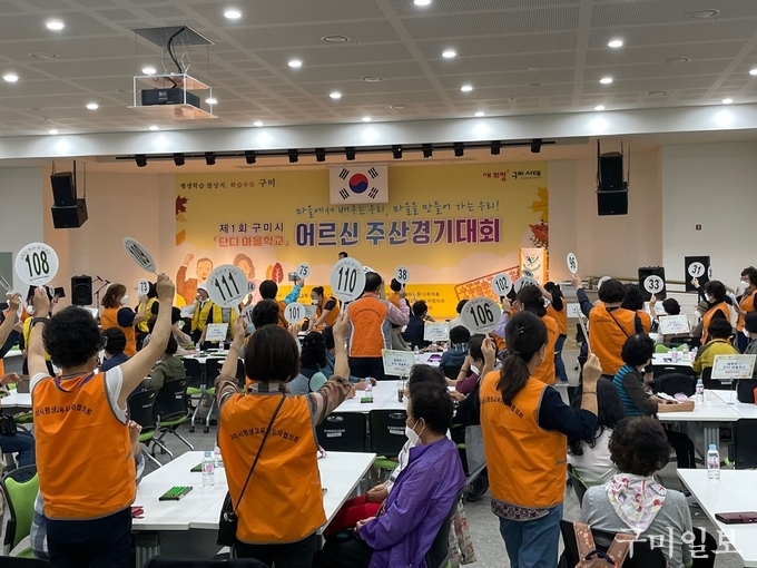 구미시(시장 김장호)는 지난 9월 27일(화) 오후 1시, 어르신 및 평생교육지도자, 여성대학 봉사자 등 200여명이 참석한 가운데 새마을운동테마공원에서 「제1회 구미시 어르신 주산경기대회」를 개최했다.