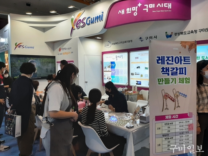 구미도서관은 구미시평생학습원, 구미교육지원청과 공동으로 홍보체험관을 마련하여 3개 기관에서 운영 중인 평생학습 우수프로그램 홍보와 함께 「레진아트 책갈피 만들기」 체험 행사를 진행하여 박람회장을 찾은 관람객으로부터 큰 호응을 얻었다.