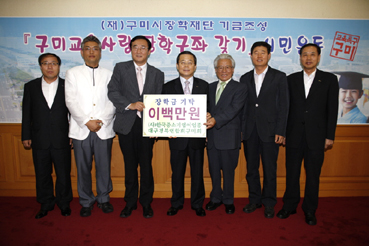 아울러 (재)구미시장학재단기금조성추진위원회(위원장 신광도) 홍덕인 사무국장도 사비를 털어 1백만원을 기탁하였다.