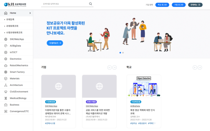 금오공대는 KIT 프로젝트마켓에 학생들의 학습 및 과제수행 결과물을 축적해 놓은 아카이브를 구축해 기업들이 금오공대의 SW 프로젝트 결과물을 쉽게 접할 수 있도록 했다. 또한 수업을 통해 개발에 참여한 학생들이 자연스럽게 실무 능력을 키움으로써 현장 업무 수행 능력이 강화된 인재로 양성되도록 했다. KIT 프로젝트마켓은 https://project.kumoh.ac.kr 사이트에서 회원가입 후 관련 내용을 확인할 수 있다.