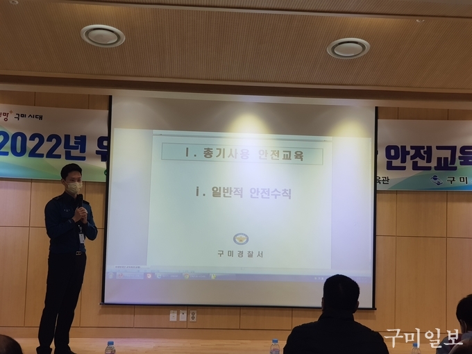 이어 구미경찰서 총포담당 직원이 강사로 나서 총기 안전사고 예방을 위한 총기 안전교육과 총포소지 허가, 갱신 관련 사항 등을 설명하였다.