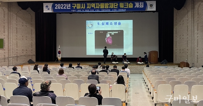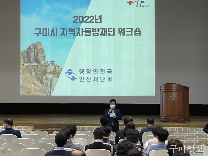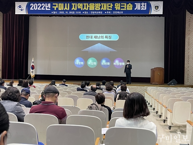 구미시(시장 김장호)에서는 지난 10월 28일(금) 민방위 교육장에서 지역의 자율적인 방재 기능을 강화하기 위해 주민 333명으로 구성된 구미시 지역자율방재단을 대상으로 『구미시 지역자율방재단 워크숍』을 실시하였다.