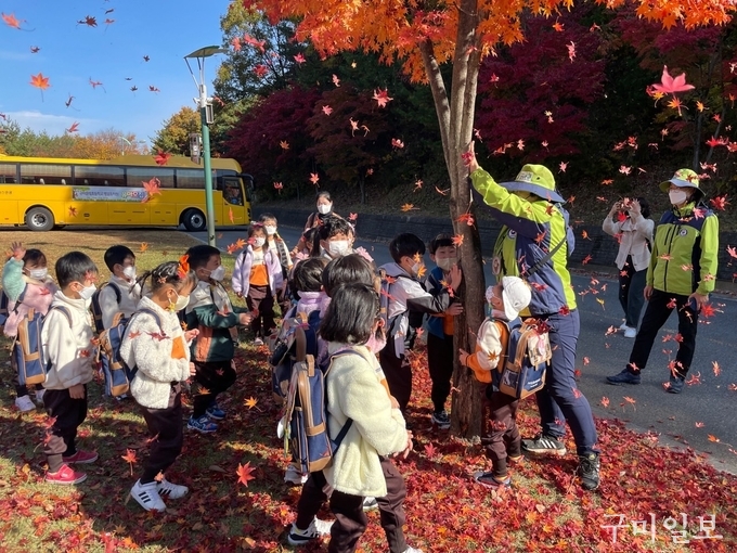 구미초등학교 병설유치원(원장 양춘희)은 만3, 4, 5세 유아를 대상으로 옥성 유아 숲 체험원 현장체험학습을 실시하였다.