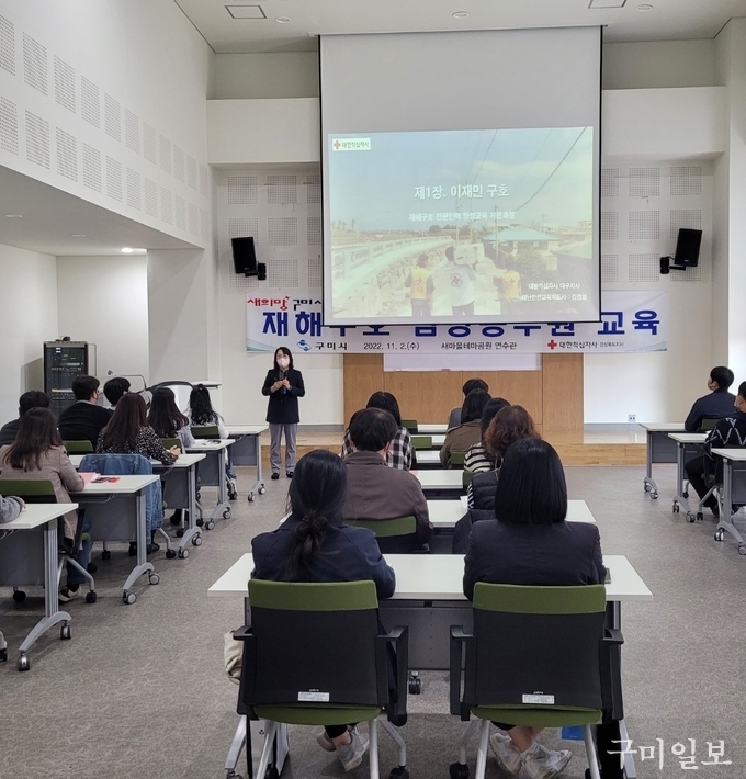 구미시(시장 김장호)는 지난 11월 2일(수) 새마을테마공원 연수관에서 구미시 재해구호 담당공무원 40명을 대상으로 교육을 실시하였다.