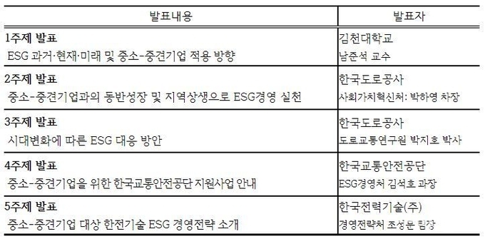 세미나에서 공공기관별 주제 발표를 통해 참여한 중견기업들이 참조 할수 있는 실질적인 ESG경영 사례가 소개되었으며, 기관별 특성이 고려된 정보를 통해, 각 참여 기업들이 상황에 맞도록 ESG경영 모델을 구체화하는데 큰 도움이 될 것으로 평가하고 있다.