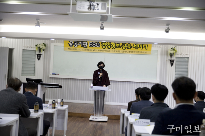 윤옥현 김천대학교 총장은 축사를 통해 “급격한 기후변화 대응 등 시대적인 요구에, 지역의 중소-중견기업의 경쟁력 강화를 위해 지역 공공기관의 고도화된 ESG경영 정보를 공유하고자, 본 세미나를 개최하게 되었으며, 많은 정보를 얻으셔서 기업경쟁력 제고에 도움이 되었으면 한다”고 말했다.