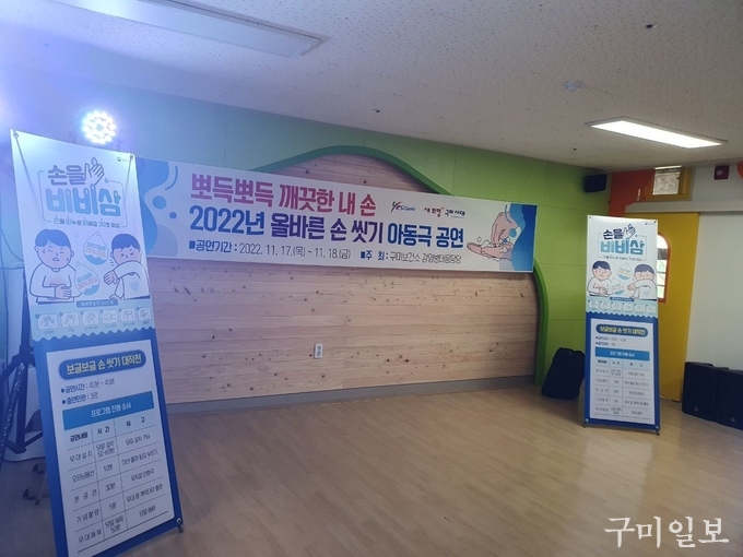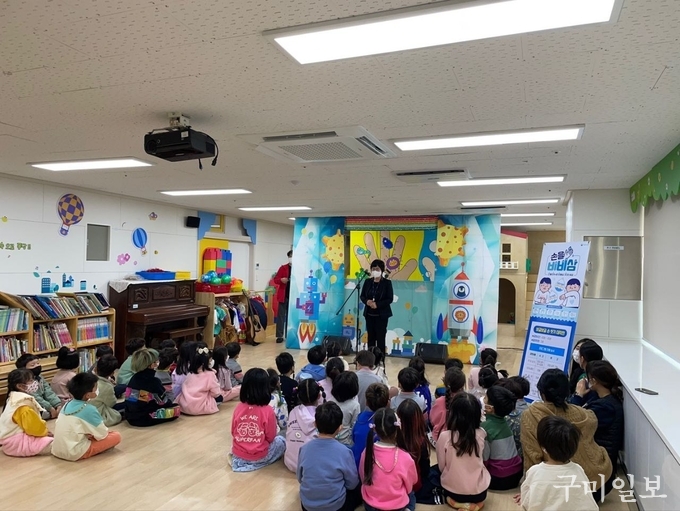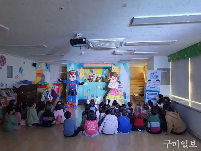 구미시(시장 김장호)는 11월 17일(목)부터 2일간 총 4회에 걸쳐 유치원 아동 150여명을 대상으로 인형극 전문극단을 초청하여 찾아가는 ‘올바른 손 씻기 아동극’ 공연을 실시했다.