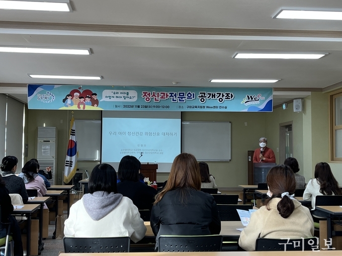 경상북도구미교육지원청(교육장 이성희) Wee센터는 11월 23일(수) ‘우리 아이 정신건강 위험 신호 대처하기’란 주제로 정신과전문의 공개강좌를 실시하였다.
