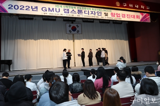 구미대학교(총장 정창주)는 12월 1일(목)부터 12월 2일(금)까지 양일간 교내 긍지관 강당에서 ‘2022 GMU 캡스톤디자인 및 창업경진대회’를 개최했다.