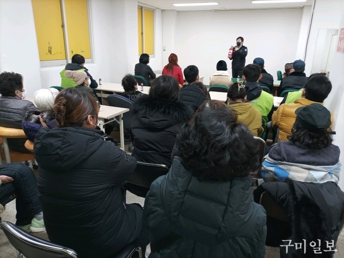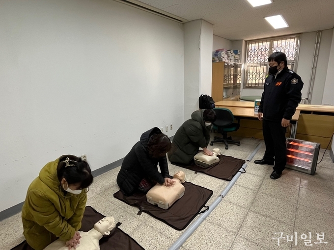 주택관리공단 구미도량2지구3단지 주거행복지원센터(센터장 장재정), 구미 도산 휴먼시아, 칠곡 북삼 휴먼시아는 구미소방서와 함께 임대주택 입주민을 대상으로 12월 14일(수)에 심폐소생술 등 일상생활 속 응급처치 및 소방안전교육을 실시했다.