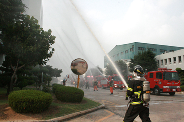이 날 훈련은 2공장 용해로동 집진기에서 원인 불명의 화재가 발생해 건물 전체로 연소 확대되는 가상 시나리오를 바탕으로, 인원 84명(소방 19, 자위소방대 60, 응원협정대 5), 장비 9대(소방 7, 응원협정대 2)이 동원되어 자위소방대와 소방공무원의 유기적 연결 방안 및 대응을 중점적으로 소화기 및 자체소방시설 등을 활용한 초기소화, 자위소방대의 화재진압 및 대처요령 등을 실시했다. 구미소방서 관계자는 “평소 위험요소를 사전에 찾아 예방대책을 강구하고, 소방안전에 대한 적극적인 관심과 교육 및 훈련을 통하여 유사시 신속한 대처로 인명 및 재산피해를 최소화하는데 최선을 다해 줄 것”을 당부했다. |