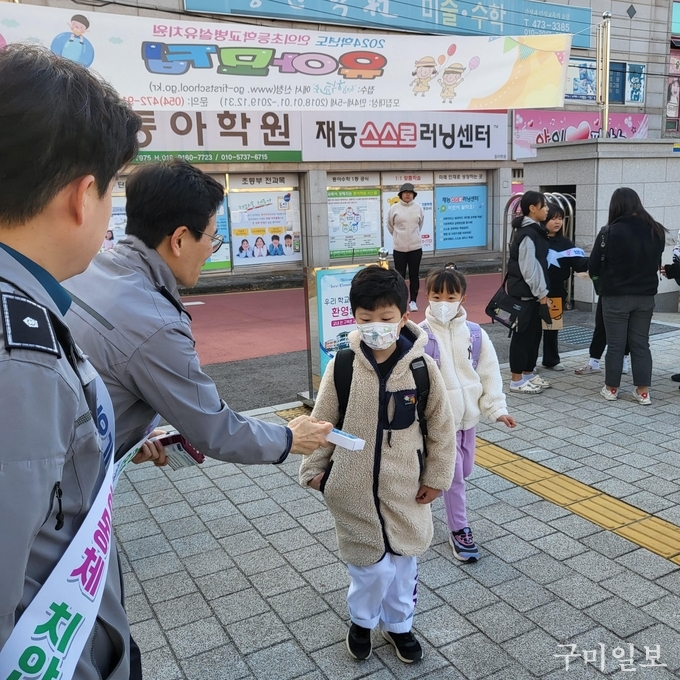 구미경찰서(서장 장종근)는 인의동 인의초등학교에서 반딧불이 세이프-존 사업 완료와 더불어 학교폭력 등 범죄예방 캠페인을 실시하였다.