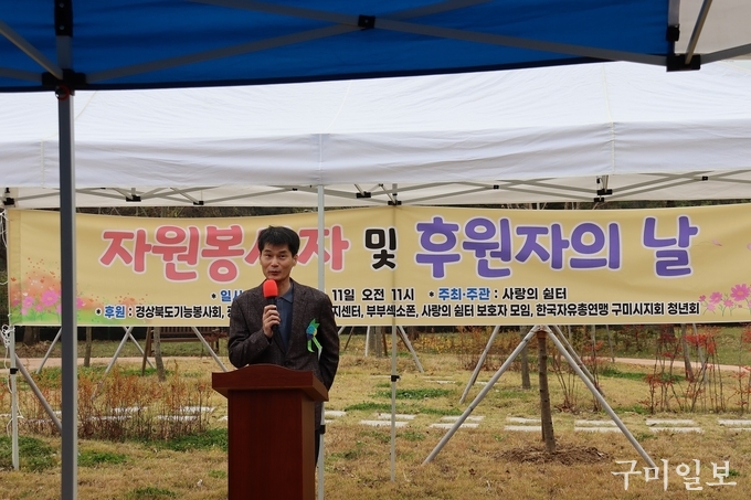 구미시는 지난 11월 11일(토) 장애인 단기거주시설 사랑의쉼터(시설장 김보영) 주관으로 시설 내 체조광장에서 사랑의쉼터 거주인 등 150여 명이 참석한 가운데 자원봉사자 및 후원자의 날 행사를 개최했다.