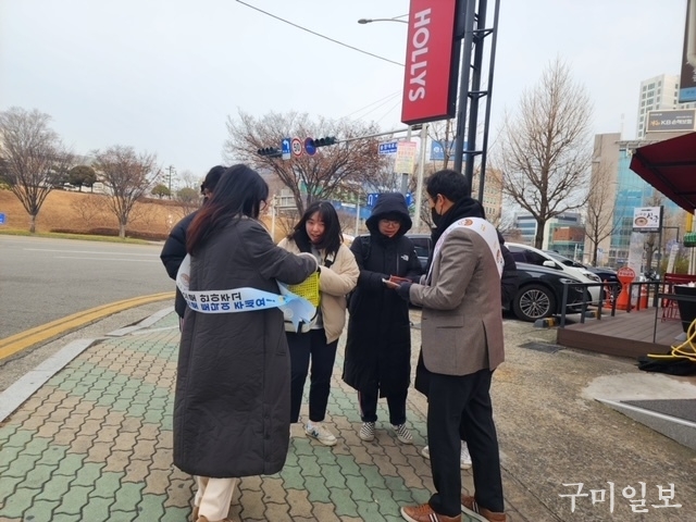 경상북도구미교육지원청(교육장 이성희)은 12월 6일(수) 유동 인구가 많은 송정동 일대에서 구미시민을 대상으로 아동학대 예방 캠페인을 실시하였다.