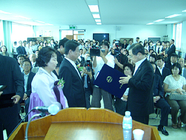 이길수 임오동장은 1976년 1월 20일 칠곡군 동명면에서 공직의 첫발을 내디딘 이래 1982년 4월 구미시로 전입하여 부녀복지회관, 근로청소년복지회관, 사회과, 총무과, 정보통신과, 회계과를 거쳐 2005년 사무관으로 승진 상모사곡동장, 2006년 8월 3일부터 임오동장으로 재임하셔서 오늘 34년의 공직생활을 마감하게 되었다. 이길수 동장님은 34개 성상을 오직 지역사회발전과 탁월한 리더십으로 지역주민들의 화합과 단결을 이끌어 냈으며 특히 근면·성실한 자세와 해박한 업무지식은 동료 공직자들의 귀감이 되었다. 이날 행사는 동장님의 약력소개를 시작으로 임용장 및 공로패수여, 녹조근정훈장 추서, 시장님의 환송사, 퇴임사, 재직기념패 및 전별금 기념품전달, 꽃다발증정, 직원송사, 기념사진촬영 순으로 진행되었으며, 식후행사로 동사무소 마당에서 참석하신 내빈과 뷔페로 점심식사를 함께 하면서 아쉬운 석별의 정을 나누었다. 퇴임식에서 이길수 동장은 비록 34년 동안 함께한 공직의 울타리는 떠나지만 동료공직자와 지역주민의 소중한 인연은 영원히 남아 있을 것이며, 앞으로 야인으로 돌아가서도 새로운 지역사회의 한 구성원으로 거듭 날수 있도록 많은 관심과 격려를 해 줄 것을 부탁하였다. |