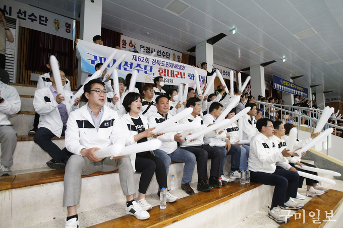 구미시의회(의장 안주찬) 전체의원과 직원 40여명은 지난 5월 12일(일) 제62회 경북도민체육대회에 출전하는 구미시 선수단을 격려하기 위해 배구 경기장 등을 방문했다.
