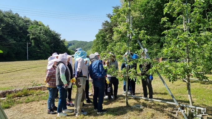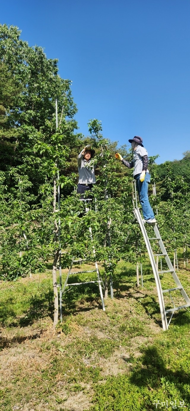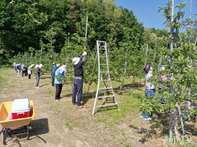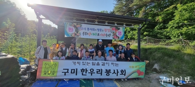 한우리봉사회(회장 하태윤) 회원 20 여명은 지난 5월 18일(토) 봉화군 물야면에서 사과 적과 봉사활동을 실시하였다.
