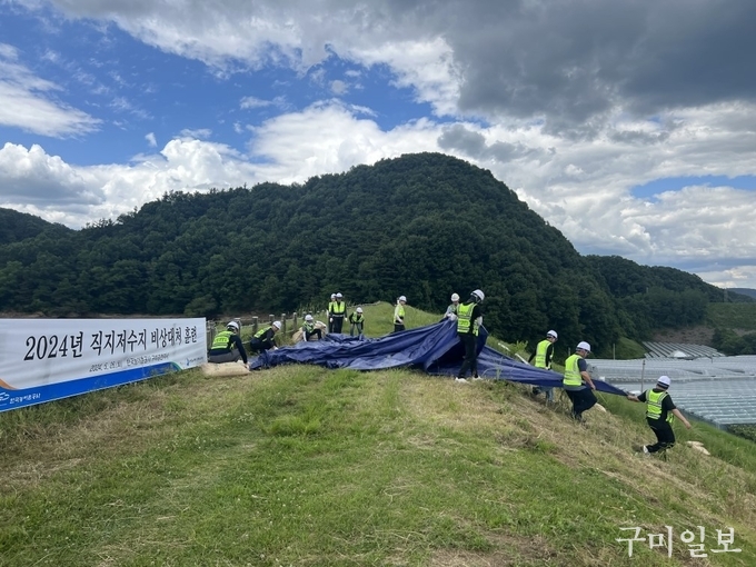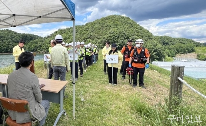한국농어촌공사 구미·김천지사(지사장 김성묵)는 지난 5월 28일(화) 김천시 대항면 직지저수지에서 태풍, 집중호우로 인한 저수지 붕괴를 대비하여 ‘비상대처훈련’을 실시했다.