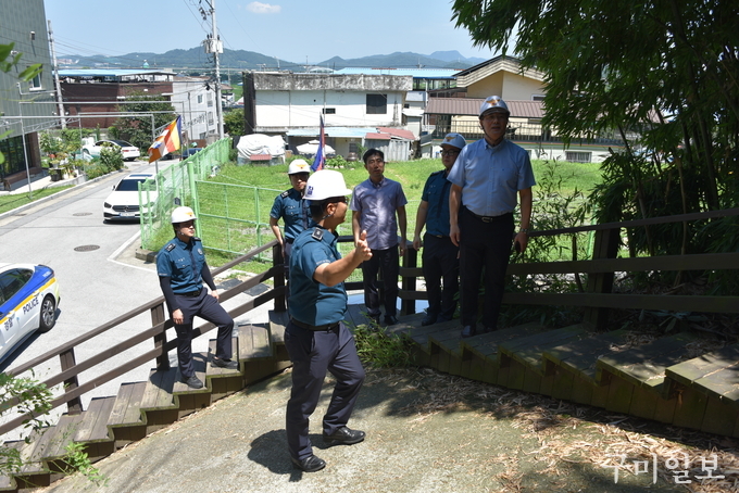 구미경찰서에 따르면, 박종섭 서장은 4일 구미시 지산동의 산사태 우려지역 등 취약지 현장을 방문해 위험요소를 점검했다. 아울러 각 지구대·파출소에 취약지 사전점검과 예방순찰 강화, 재난재해 즉응태세 확립을 당부했다.