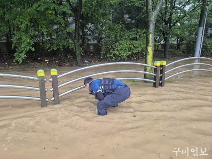 구미경찰서는 침수피해 등 재난 상황에 대비하기 위해 지난 5~6월 동안 관내 취약지역을 사전 점검한 바 있다. 경찰은 관계기관과 정보를 공유하며 지속 협업하는 한편, 선제적 예방활동으로 주민 불편을 최소화하고 시민의 생명 · 재산을 보호하는 경찰 본연의 임무를 빈틈없이 수행하겠다고 밝혔다.