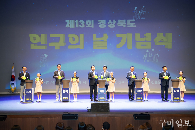 경상북도는 구미시, 인구보건복지협회 대구경북지회와 함께 7월 11일(목) 구미시 문화예술회관에서 김학홍 행정부지사, 김장호 구미시장, 도의원, 구미시민 등 1,000여 명이 참석한 가운데 ‘제13회 경상북도 인구의 날 기념식’을 개최했다.
