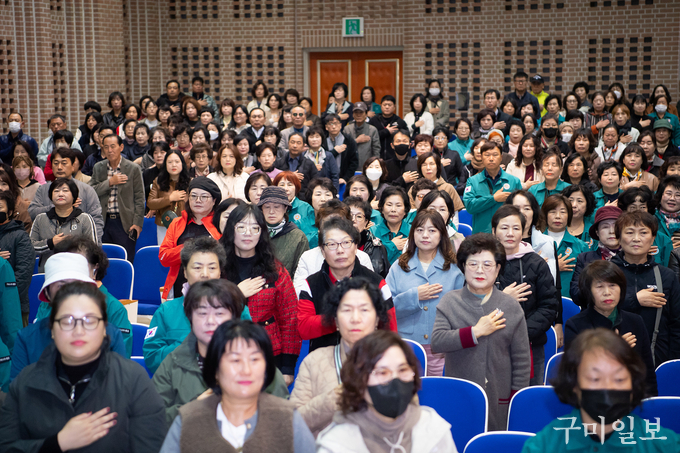 구미시는 11월 6일 상모사곡동 민방위교육장에서 통·리 지역민방위대장 600여 명이 참석한 가운데 민방위 기본분야 및 실전 체험교육을 실시했다.