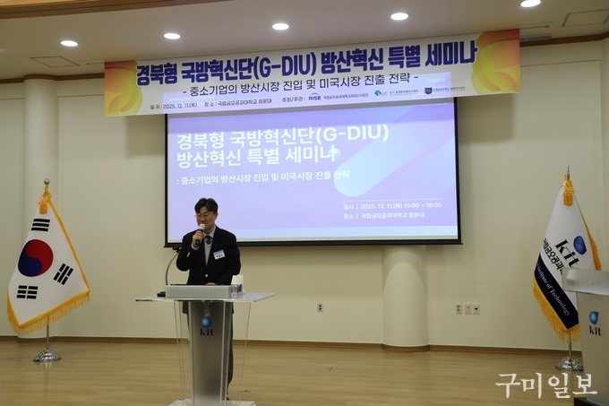 국립금오공과대학교가 지역 중소기업의 방산시장 진입을 지원하고, 미국 방산 시장 진출 전략을 공유하기 위해 ‘경북형 국방혁신단(G-DIU) 방산혁신 특별 세미나’를 12월 11일 개최했다.