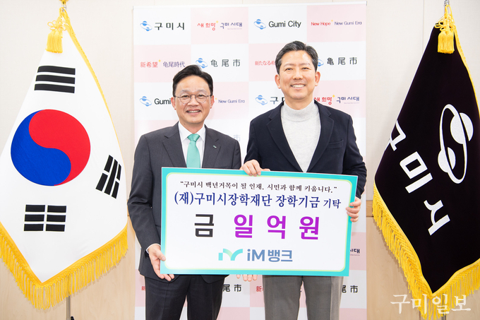 iM뱅크(은행장 강정훈)가 구미지역 인재 양성과 교육환경 개선을 위한 장학기금 1억원을 (재)구미시장학재단(이사장 김장호)에 쾌척했다.