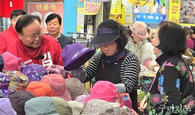 김재원 경상북도지사 예비후보는 지난 3월 21일 본선 경선 첫날을 맞아 구미 새마을중앙시장을 방문하며 본격적인 민생 행보에 나섰다.