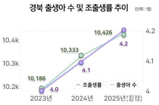 ** 경북 조출생률 추이 : (’23) 4.0명 → (‘24) 4.1명 → (‘25) 4.2명 (잠정 수치)