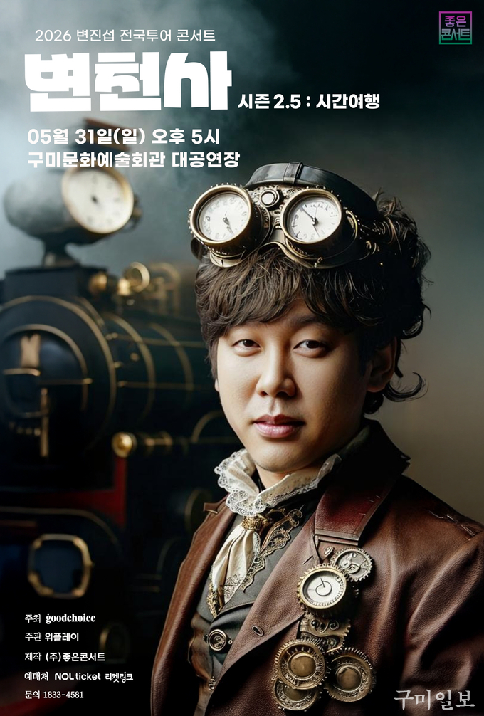 한편, <변진섭 전국투어 콘서트 : 변천사 시즌2 - 시간여행>는 ㈜좋은콘서트가 주최·주관하며, 구미일보가 후원 및 홍보 협력으로 참여해 공연의 의미를 더했다.