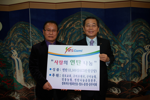 구미시 상모사곡동(동장 박세범)에서는 2009. 12.11(금) 연탄나눔운동본부(공동대표 최영수, 황영)주관하에 상모교회 및 LG경북협의회에서 참여하여 사랑의 연탄, 김치 전달식이 있었다.