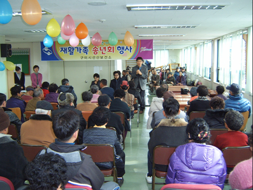 이날 행사는 한 해 동안 재활의지로 장애를 극복하고 어려운 여건에도 불구하고 노력해온 환우들에게 표창을 수여하고 노고에 대한 격려도 함께 하였다. 2부 행사로 웃음치료 및 장기자랑에서는 언어 및 신체적 장애를 가진 환우와 가족 그리고 자원봉사자들이 그동안의 어려움을 잊어버리고 한마음으로 마음껏 웃을 수 있는 시간이 되었다. 또한, 노래 실력과 댄스 경진대회도 숨겨놓은 재능을 유감없이 발휘하여 투병생활을 간호해 온 가족과 봉사자들의 박수갈채로 눈시울을 적시게 하였다. 특히, 한 해를 되돌아보며 라는 제목으로 환우분의 글 낭송으로 2009년 한해의 희로애락을 회상하며 2010년에도 올 한해와 같이 열심히 노력하여 가족의 짐을 조금이나마 덜어주고 지역사회의 한사람으로 참여할 수 있도록 재활의지를 다지는 화합의 시간을 가지기도 했다. 구건회 선산보건소장은 환우분의 신체적·경제적 자립과 소중한 인격체로 존중 받으며 한 사회의 구성원으로써 성실하게 살아 갈 수 있도록 함께 노력하자며 아낌없는 찬사와 격려의 인사말을 전하였다. |