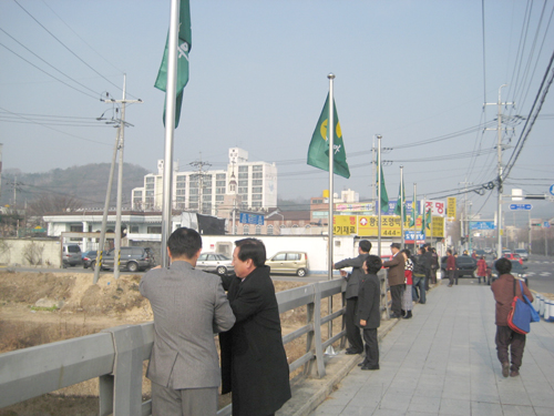 이날 행사에서는 올 한해의 각종 업무 보고를 통해 그동안 지도자들의 노고를 치하 하고, 회원들간의 단결과 화합을 위한 시간을 가졌다. 도량동 새마을 지도자들은 61명의 새마을 지도자들로 구성, 어느 지역 보다 조직력을 갖추어 운영 하고 있으며, 새마을 영농지 경작 등을 통해 불우이웃 돕기 및 단체 운영 기금 마련을 통해 단체의 자생력 강화에 앞장섰으며, 더불어 함께 사는 사회를 만들기 위해 각종 불우 이웃 돕기 행사를 가지는등 지역 사회 발전을 위해 발벗고 앞장섰다. 또한 연석회의 및 송년행사가 끝난뒤 도량 1·2동 입구에 군집기 게양대를 설치, 새마을기 게양식을 가졌다. 새마을 군집기는 도량동 새마을 남·녀 지도자들의 숙원 사업으로 관내 얼굴인 도량교와 도민교 2개소에 40개의 새마을기와 태극기를 게양하여 시민들에게 새마을 정신을 알리고 실천하기 위해 손수 설치하였다. 새마을 지도자들은 어려운 경기 새마을로 주변 사람들이 밝아지고 이를 계기로 살기 좋은 도량동 만들기에 더욱더 노력하기로 다짐하였다. |