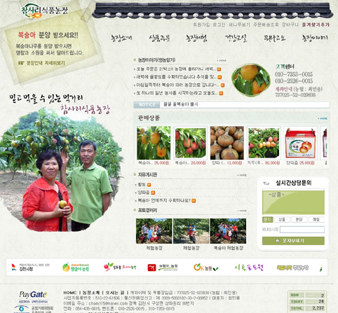 - 2012년 경상북도 사이버농업인 정보화 경진대회 전자상거래 부문에서 우수상 수상 황악산에서 발원한 하원천과 영남의 젖줄 낙동강 지류인 단물이 흐르는 감천의 합류 지점인 경북 김천시 구성면 상좌원리에서 시간의 흐름 속에서도 변함없는 황악산과 유유히 흐르는 하원천이 내어준 선물을 소비자에게 나누어 드리기 위해 변함없이 흙과 함께 한평생을 살아오고 있다는 최민용(60세), 최명자(58세)부부를 만났다. 하루일과는 낮에는 농장과 가공공장에서 일하고 밤에는 컴퓨터를 켜는 것을 시작으로 새로운 저녁 일과를 시작한다고 한다. 부부는 2009년 김천시의 지원으로 Cyber에 조성한 농장을 관리하고 인터넷 세상에서 고객과 소통하느라 자정을 넘기는 일이 다반사다. 토양은 갈고 가꾸는 만큼 토질이 좋아 지는 것처럼 인터넷 세상에서 고객과 소통하는 만큼 소비자가 늘어나고 매출도 늘어난다고 하면서 이제 Cyber Farm사업에 농가들이 눈을 돌려야 할 때라고 했다. “처음에는 농사를 몰라 땅을 배우고 먹거리를 배우며 살았습니다” 복숭아, 자두, 양파가 커가는 것을 보며 자연의 섭리를 알았고 먹거리의 소중함을 알았다고 말하는 최민용 농장주. |