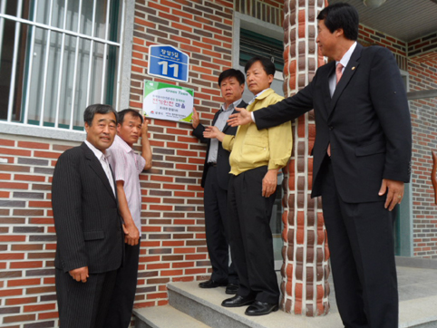 이른 아침 장암3리 마을에 도착한 한국전기안전공사 권택수 경북서부지사장외 직원 30여명은 더불어 살아가는 밝고 건강한 사회를 만들기 위해 운영하는 "전기 재해 없는 마을"의 지속적인 운영을 위한 "그린타운" 협약 및 현판식을 거행하고, 각 가정(45호)을 방문하여 불량전기설비 개선 및 전기절전요령, 전기안전 홍보활동을 전개하였으며, 오후에는 6가구 10,000㎡에 양파순자르기, 감자 수확등에 대한 봉사활동을 하였다. |