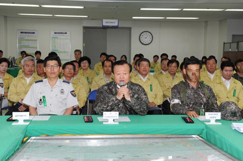 보고회에는 의장인 박보생 시장을 비롯한 간부공무원과 이갑수 김천경찰서장, 3대대장 등 100여명이 참석한 가운데 훈련개요설명, 훈련상황보고, 의장 인사말 순으로 진행되었다. 이날 박보생 의장은 “이번훈련이 연례적으로 실시하는 형식적인 훈련이 아닌 실제 상황이 발생했을 때, 민관군경이 유기적인 협조체계를 구축하여 시민의 생명과 재산을 보호 할 수 있도록 완벽한 통합방위체제를 구축 할 것”을 당부하였다. |
