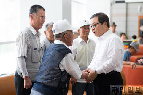 600여명의 어르신들은 시정업무에 바쁘신데도 봉사를 해준 남유진 구미시장 내외분께 반갑고 고맙다는 말씀과 함께 42만 시민을 책임져야 하는 구미시장의 건강을 당부하는 훈훈한 분위기가 되었다.