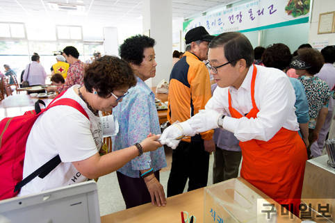 이 날은 민선5기 4년차 첫날을 맞는 의미 있는 날로 어르신들을 존경하는 마음으로 시장님 내외분은 어르신들에게 수저를 배부하고, 몸이 불편하신 분들에게는 식사를 가져다 드렸다.