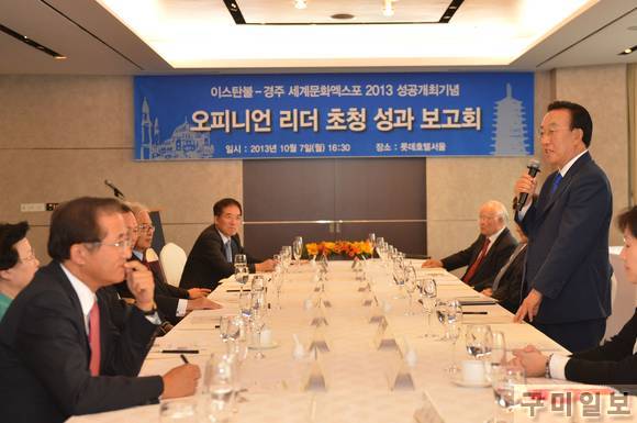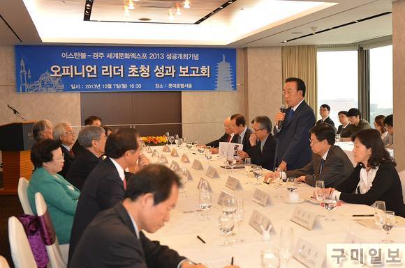 ‘이스탄불-경주세계문화엑스포2013’ 성공개최 기념 오피니언 리더 초청 성과 보고회와 경주세계문화엑스포 자문위원 위촉식이 7일 오후 5시 서울 소공동 롯데호텔(36층 아스토룸)에서 열렸다.