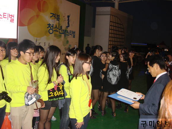 이 대회에서 구미시청소년 동아리팀 천해(체험부스 16명 구미시청소 년문화의집)팀이 최고의 영예인 대상 수상, 아드레날린(댄스 8명:경구고 외 2개교), 줄리엣(댄스 10명 상모중 외 3개교)이 각각 우수, 장려상 수상의 영예를 차지하여 구미시 청소년의 끼와 재능을 마음껏 펼쳤다.