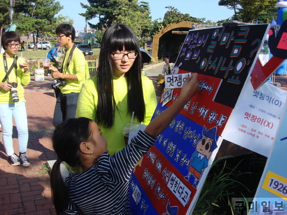 대상의 영광을 차지한 천해 동아리팀은 “한글을 그리다”는 주제로 우리말 느낌 아니까, 내가 한글지킴이, 한글날 알고 쉽시다, 맞춤법 얼만큼 아시나요, 한글 자음모음으로 팔찌 만들기 총5가지 체험을 통해 우리말 대신 외국어를 무분별하게 사용하는 청소년들의 의식개선에 기여하고, 올바른 한글을 사용해야겠다는 마음을 가지길 바라면서 체험부스를 운영하게 되었다고 말했다.