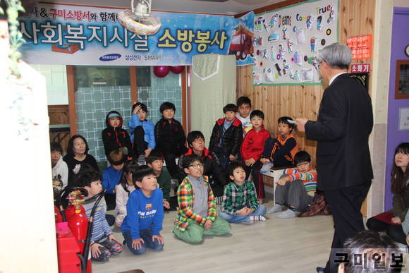 경북도 구미소방서(서장 이구백)는 18일 과 삼성전지 직워과 함께 새길지역아동센터를 방문하여 센터관계자와 어린이들을 대상으로 소방안전교육을 실시했다.