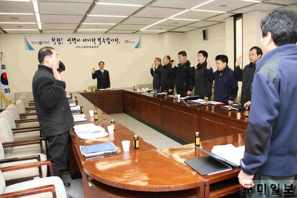 구미시문화예술회관(관장 황창수)에서는 2014. 2. 18(화) 09시30분 회의실에서 전직원이 참여 청렴실천 결의문 낭독을 시작으로 구미시 청렴도 1등급 실현을 위한 청렴정책 추진 계획 설명과 전화친절도 향상교육. 그리고 최근 실시한 벤치마킹 결과보고 및 토의로 직원간 소통의 시간을 가졌다.