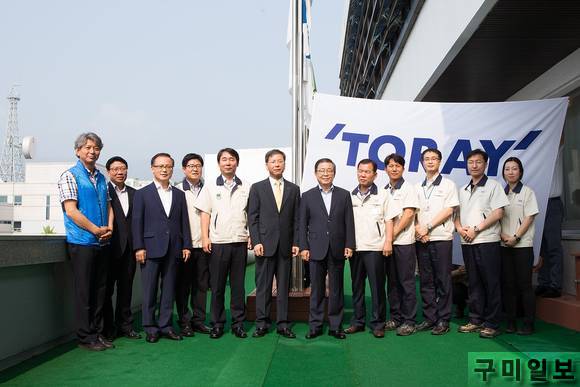 구미시(시장 남유진)는 7월 이달의 기업으로 도레이케미칼(주)[대표이사 회장 이영관]를 선정하고 7월 1일 오전 9시 시청 국기게양대 앞에서 남유진 구미시장과 해당 기업의 문상옥 생산본부장(공장장) 등 30여명이 참석한 가운데 사기(社旗) 게양식을 가졌다.
