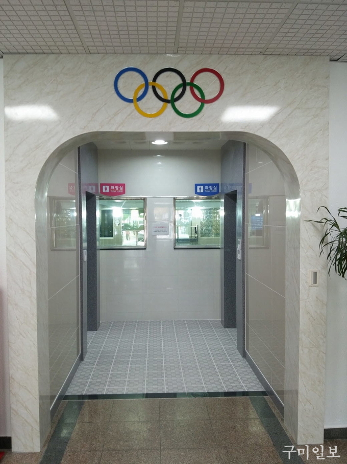 구미시는 1991년 개관 후 연간 69만명이 이용하는 올림픽기념관이 노후화로 인해 시설 이용에 불편이 있음을 인식하고, 2014~2015년 예산을 긴급 편성하여 우선 급한 기계․전기계통의 설비와 배관을 모두 철거 교체하는 전체 리모델링을 실시하여, 구조 보강과 방수공사를 통해 안전과 내구성을 확보하였으며, 올해 추가 예산 확보를 통해 가장 불편을 겪는 화장실에 대해 정비 공사를 실시하였다.