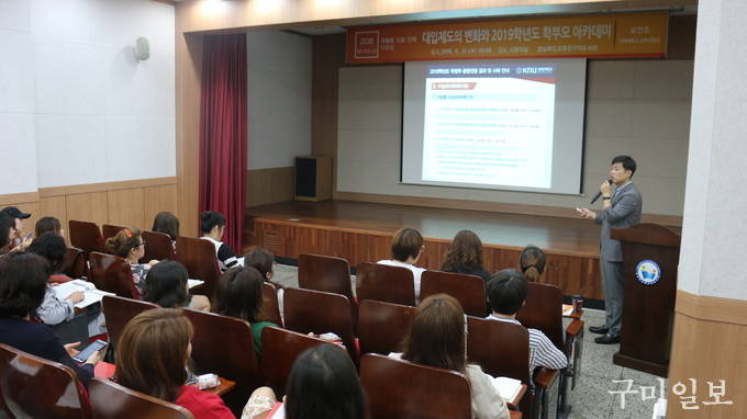 경상북도교육청구미도서관(관장 김동구)은 6월 27일(수) 오전 10시 구미지역 학부모를 대상으로 ‘대입제도의 변화와 2019학년도 학부모 아카데미’를 경북대학교 입학사정관을 초빙하여 특강 형식으로 운영하였다.